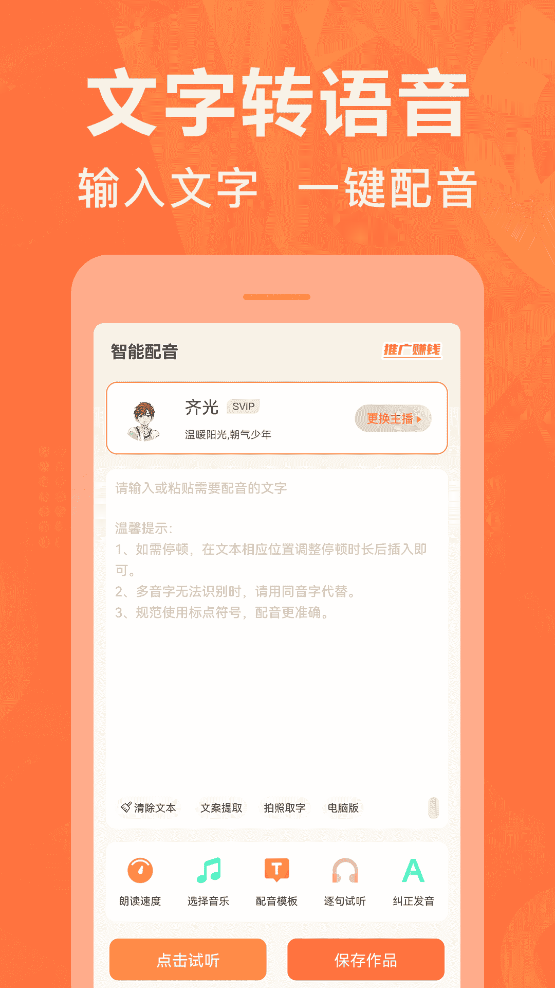 1、專業(yè)配音軟件,配音的好幫手;音頻工具格式轉(zhuǎn)換、剪輯拼接;新鮮素材配音模板、背景音樂。