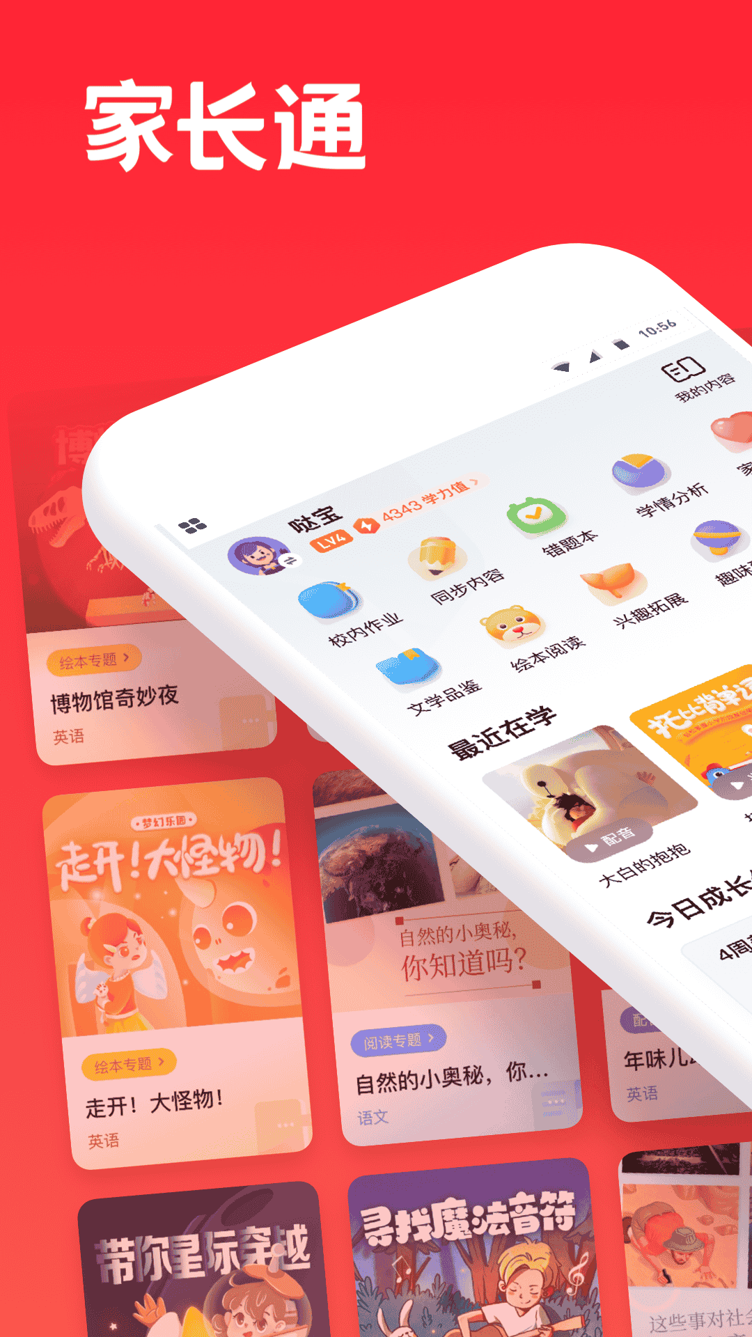 3、海量音視頻暢學,趣味精品內容,如開口說英語、中英雙語繪本、哈利波特、數學益智、塔克編程、史記精選等內容。
