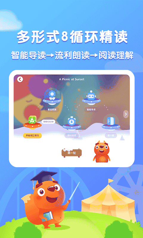 2、多形式循環(huán)精讀,有讀圖、導(dǎo)讀、跟讀、朗讀;游戲化閱讀,讓孩子輕松愛上原版書閱讀。