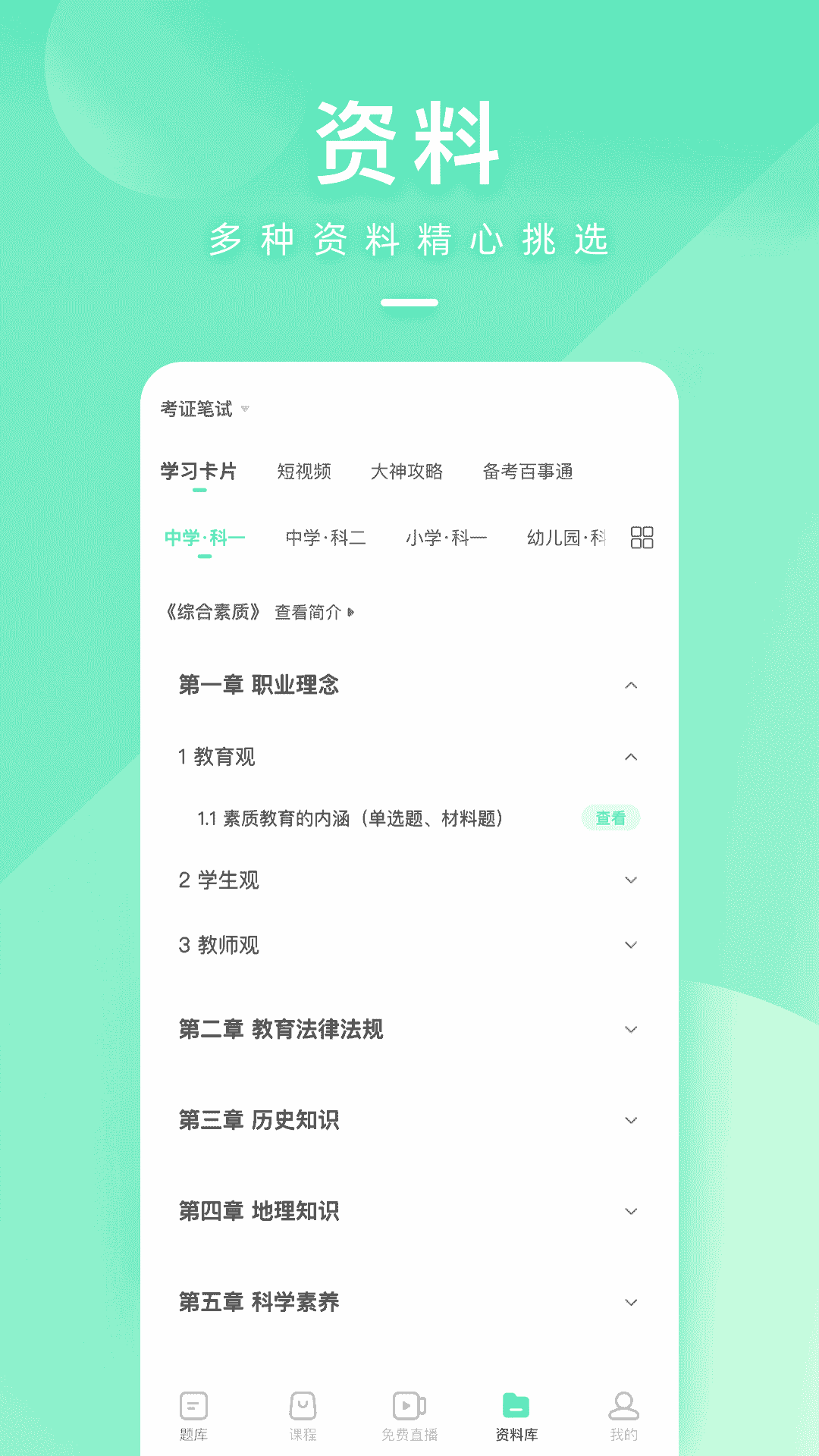 4、根據您的考試目標,如教師資格證筆試或面試、教師招聘筆試或面試,為您量身定制題庫和課程。