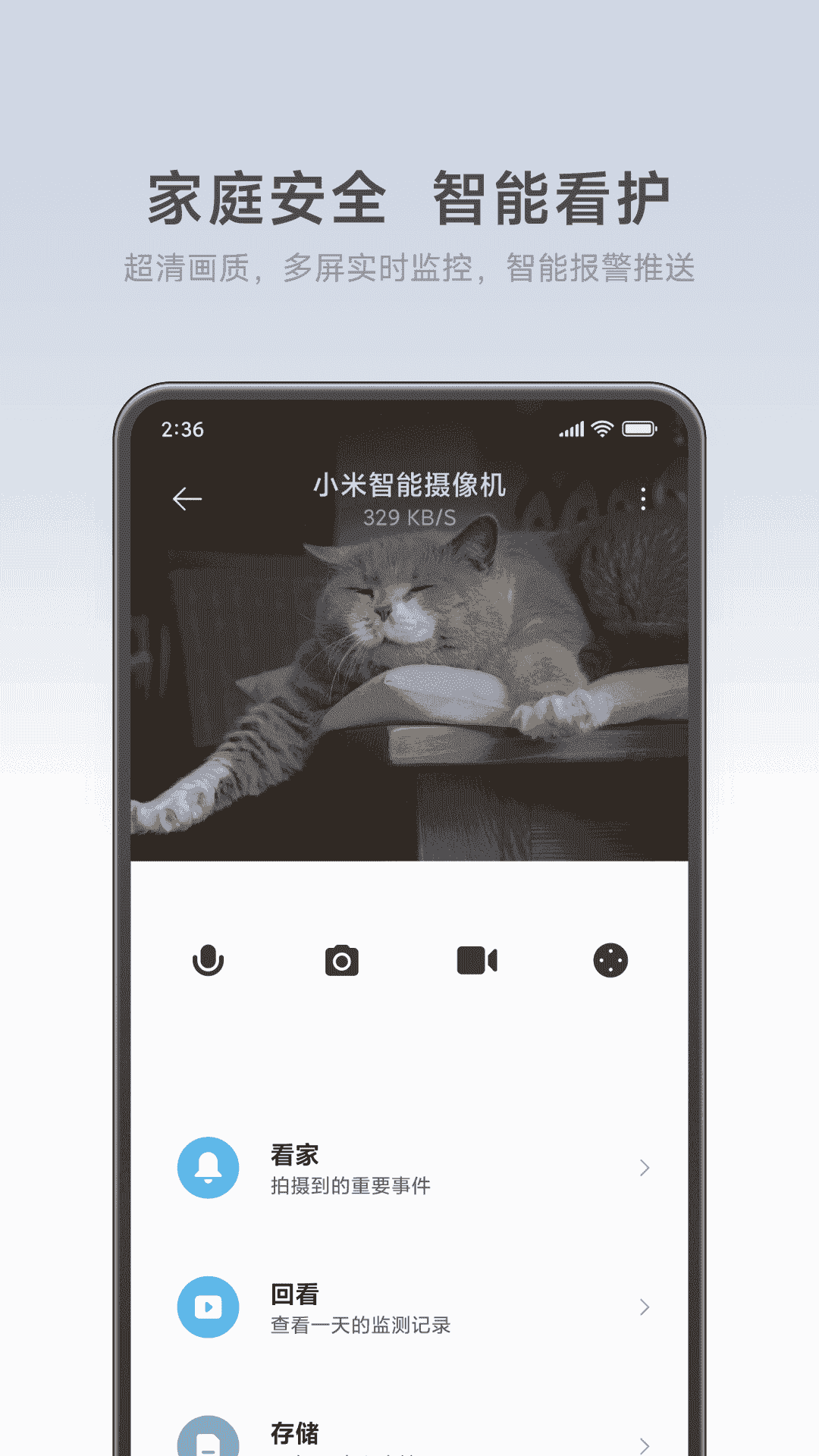 2、家庭安全,智能看護,超清畫質,多屏實時監控,智能報警推送。