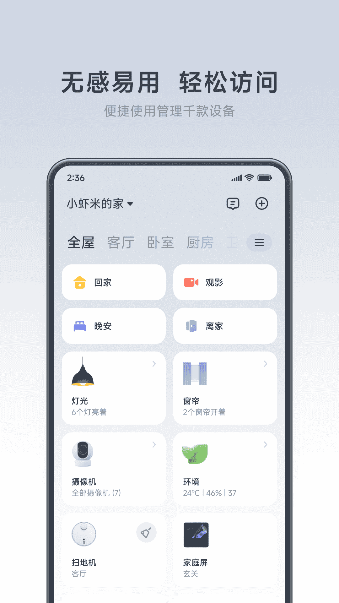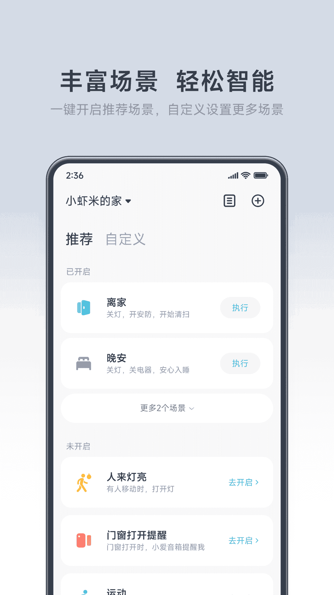 3、豐富場景,輕松智能,一鍵開啟推薦場景,自定義設置更多場景。