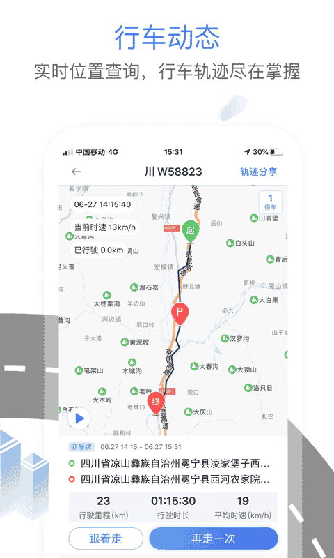 2、添加車輛:可查詢實時位置、軌跡回放、位置分享功能。