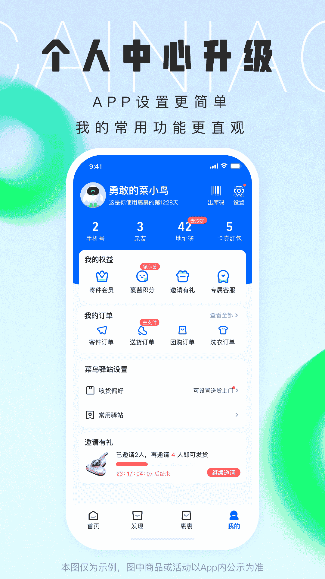 1、便民福利:裹裹權(quán)益、領(lǐng)寄件券、搬家拉貨、充話費、邀請有禮。