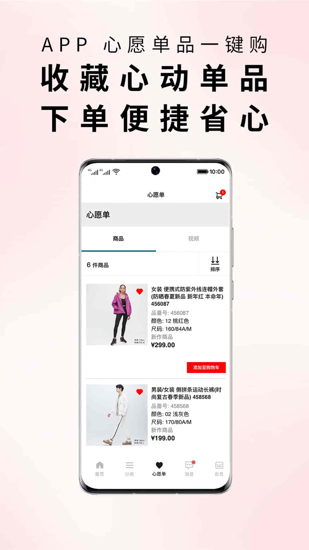 3、一鍵開啟消息通知,了解最新活動、新品上新、活動促銷、限時折扣及獲取;隨時查看商品信息,便捷查看商品評價、穿搭建議以及門店庫存。