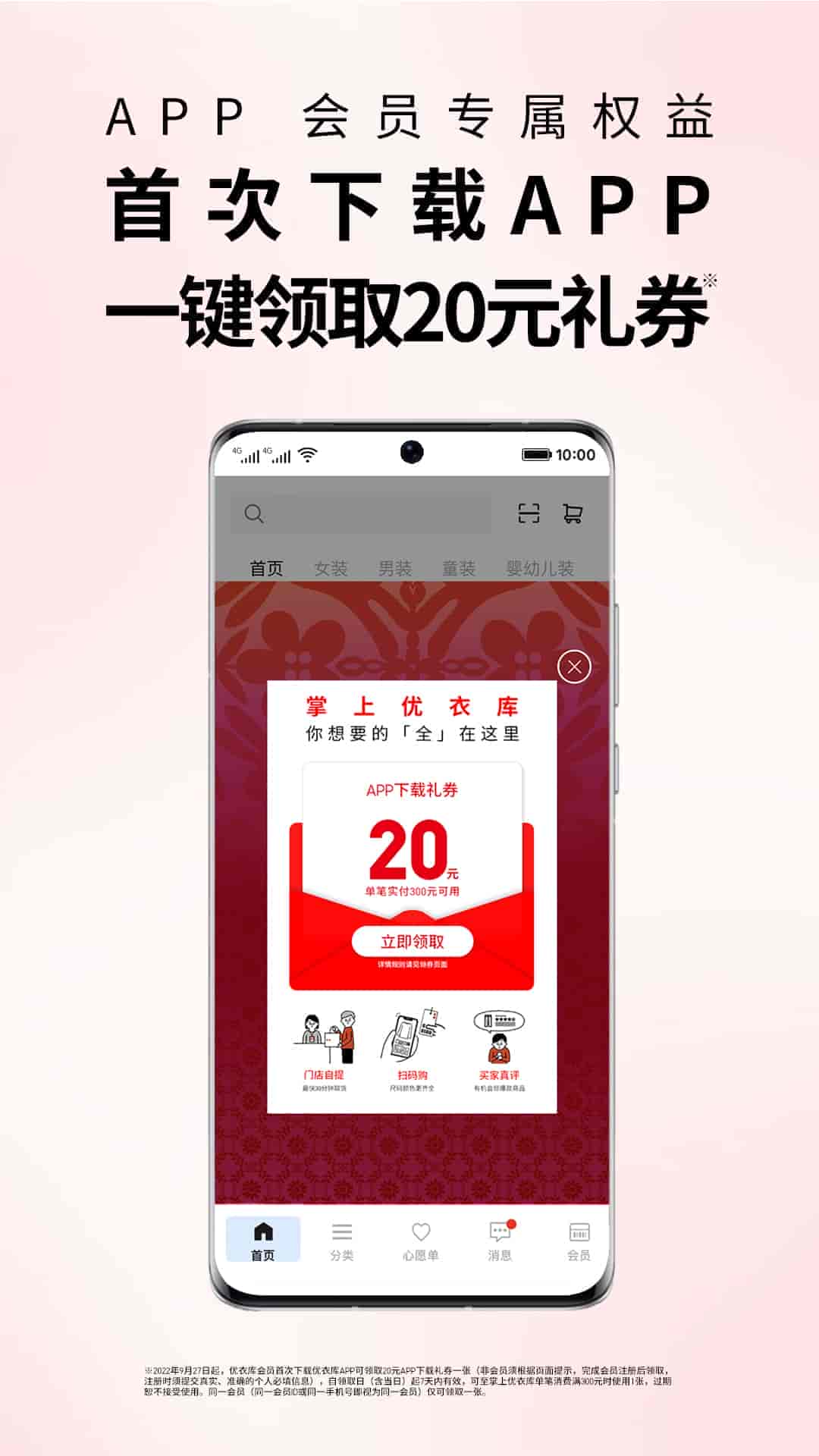 1、優衣庫APP專享福利,使用APP購物體驗不定期專享優惠價,商品款式及尺碼,獲取全部新品資訊。
