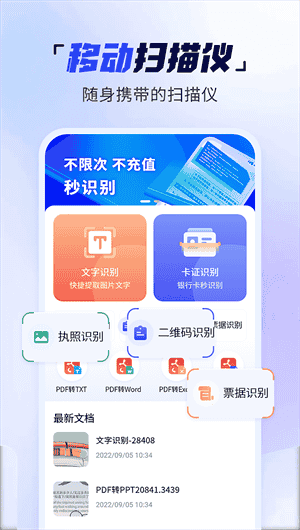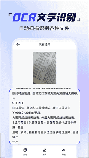 文字識別:支持OCR文字識別功能,將掃描的圖片中的文字提取出來,方便編輯和復制。