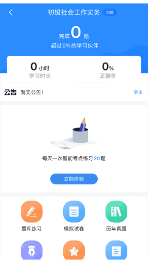 試題練習:提供大量社工考試試題,覆蓋多種題型,支持章節練習、隨機練習等模式。