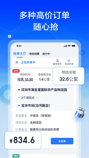 訂單管理:查看附近貨物配送訂單,自由選擇接單,方便快捷。