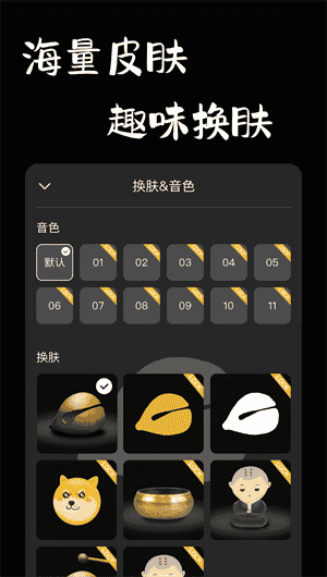 個(gè)性定制:用戶(hù)可根據(jù)自己的喜好,選擇不同的電子木魚(yú)、佛經(jīng)和禪修音樂(lè)。