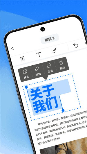 輕閃PDF-在線(xiàn)PDF編輯閱讀簽名v2.5.0是一款專(zhuān)業(yè)的PDF編輯軟件,具有簡(jiǎn)潔的界面和強(qiáng)大的功能,能滿(mǎn)足用戶(hù)在日常工作和學(xué)習(xí)中對(duì)PDF文件的各種操作需求。通過(guò)輕閃PDF編輯,用戶(hù)可以輕松地對(duì)PDF文件進(jìn)行編輯、轉(zhuǎn)換、合并、分割等操作,提高工作效率和學(xué)習(xí)效果。