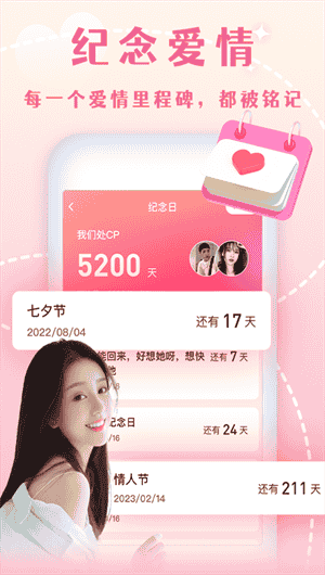 2.情侶成長記錄:軟件可記錄情侶們在一起的點滴時光,成為情侶間美好回憶的寶貴紀念。