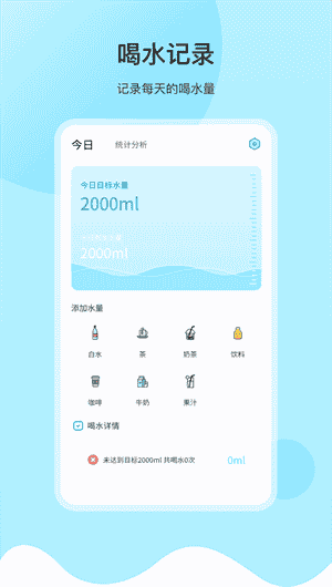 2、數據可視化:通過圖表和數據,用戶可以清晰地了解自己的飲水情況和進步。