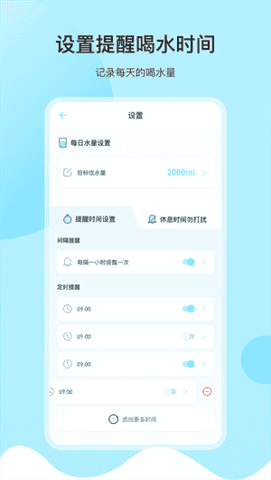 3、靈活設置:軟件支持自定義喝水提醒,用戶可以根據個人需求調整提醒頻率和時間。