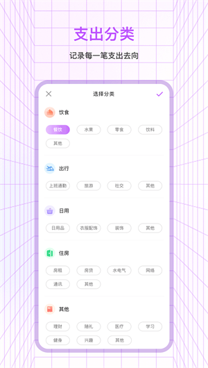 2、自定義分類:支持用戶自定義收支分類,便于記錄個性化消費習慣,使得賬單更具參考價值。