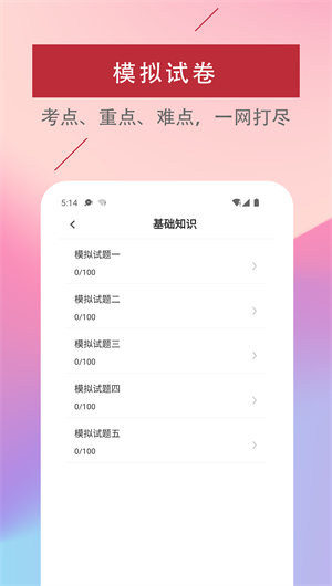 2、模擬考試:提供模擬考試功能,幫助考生熟悉考試環(huán)境,提高應(yīng)試能力。