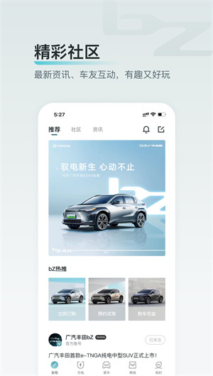 廣汽豐田bZAPP是一款專為廣汽豐田電動汽車用戶設計的智能手機APP。這款軟件致力于為用戶提供一站式的智能出行解決方案,整合了車輛信息查詢、導航、充電站查詢等多種功能,讓用戶可以隨時隨地掌握愛車動態,享受智能出行的便捷與舒適。