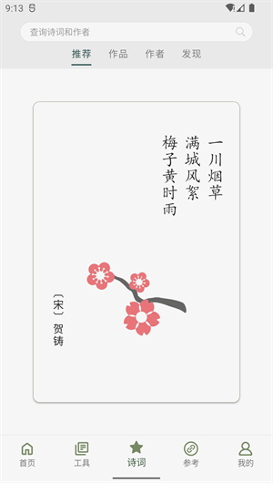 搜索與篩選:用戶可以通過關鍵詞、作者、朝代等多種方式快速檢索詩詞,方便查找心儀的作品。