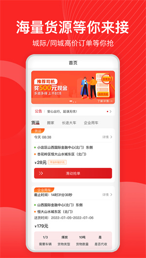 智能接單:司機可以通過宏鼎環城司機端APP隨時查看附近的貨源信息,根據自己的需求和行程安排選擇合適的訂單,輕松接單。