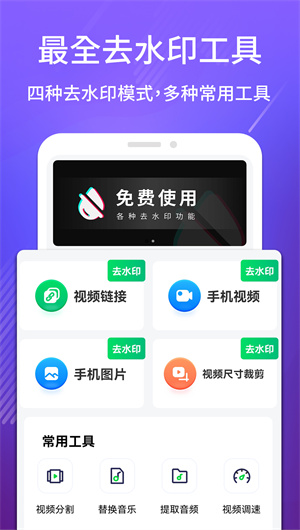 短視頻去水印大師APP擁有豐富的功能,支持視頻去水印、圖片去水印,以及在圖片和視頻中添加文字、圖片、水印、LOGO等內容。此外,軟件還支持多種視頻剪輯工具,如裁剪、旋轉、調整速度等。無論您需要去除視頻中的水印,還是在圖片中添加個性化的水印,這款應用程序都能滿足您的需求。