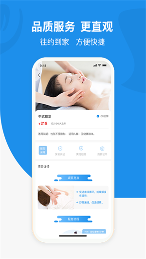 一鍵預約: 用戶只需通過我們的一鍵預約系統,即可輕松預約專業的推拿師上門服務,無需再通過復雜的流程。