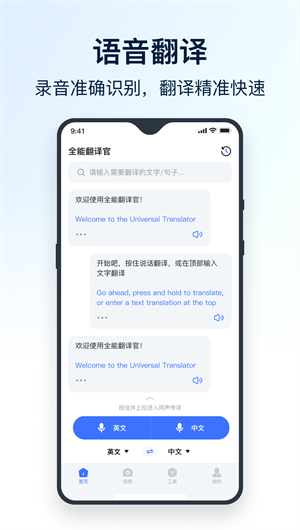 "全能翻譯官-智能識(shí)別一鍵翻譯"是一款體積小巧、功能強(qiáng)大的智能翻譯軟件。這款軟件包含多種翻譯工具,可以滿足不同用戶在學(xué)習(xí)、工作和生活中的各種翻譯需求。使用"全能翻譯官",讓語言障礙不再成為溝通的阻礙。
