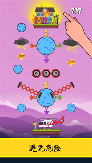 安全繩放置: 玩家需要在游戲中合理放置安全繩,以確保被困人員能夠順利通過險惡的環境。