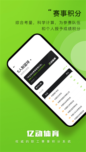 賽事積分:億動體育APP提供了賽事積分功能,讓參與者可以根據自己的賽事表現得到相應的積分,增加了賽事的競技性和趣味性。
