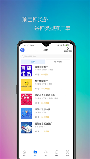 一站式服務:推伙伴APP提供一站式的推廣對接服務,涵蓋了項目、渠道、團隊等各個方面,讓用戶可以在同一平臺上完成所有操作,極大地提高了工作效率。