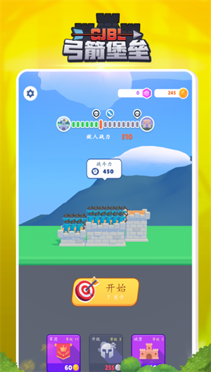 "弓箭堡壘"是一款精彩絕倫的塔防射擊游戲。在這款游戲中,你將利用弓箭在城堡上阻止敵人的進攻。你的堡壘上有許多弓箭手,他們為你提供強大的火力支持。只有用正確的策略和臨場判斷,你才能保護城堡,擊退所有的敵人。