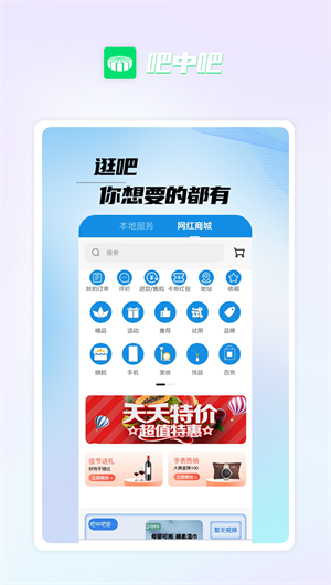 吧中吧APP是一個全新的綜合性移動平臺,將眾多熱門的功能和服務融合到一起,致力于為用戶提供一站式的數字體驗。無論你是想欣賞精彩的視頻、購物直播、探索本地服務,還是與他人即時通訊,吧中吧都為你提供了簡單易用的解決方案。