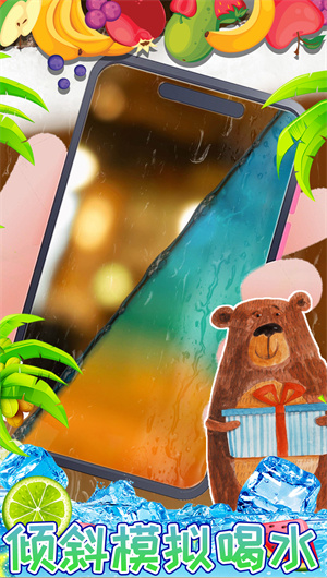 模擬飲用:將手機傾斜,就可以看到屏幕上的飲料隨之流動,伴隨著逼真的飲用聲效。