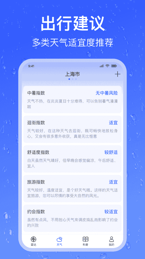 3、提供穿衣、洗車、紫外線、感冒、運動、旅游等生活指數(shù)推薦。