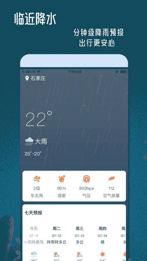 2、臨近降水,分鐘級(jí)降雨預(yù)報(bào),出行更安全。