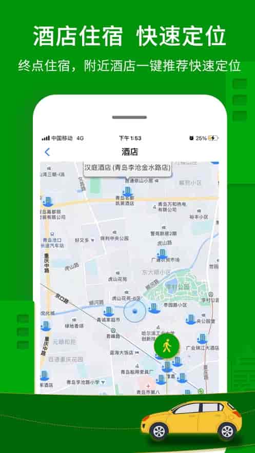 2、酒店住宿,快速定位,終點住宿,附近酒店一鍵推薦,快速定位。