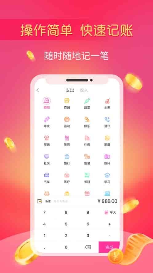 1、極簡的操作流程,快速完成每一筆記賬操作。