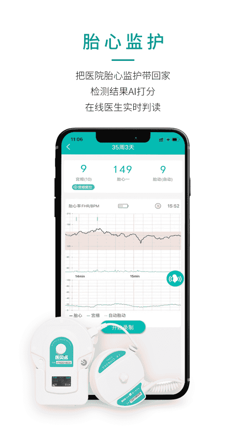1、把孕期必備儀器從醫院租回家,檢測結果AI打分,在線醫生實時判讀。