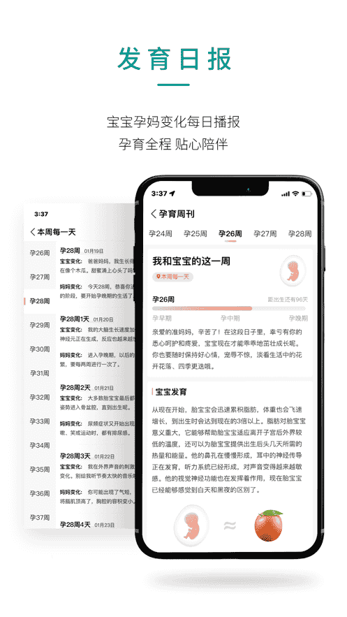 3、每日的孕育周刊記錄著孕媽的每日變化,在每位媽媽孕育過程中,全心全意貼心陪伴在身邊。