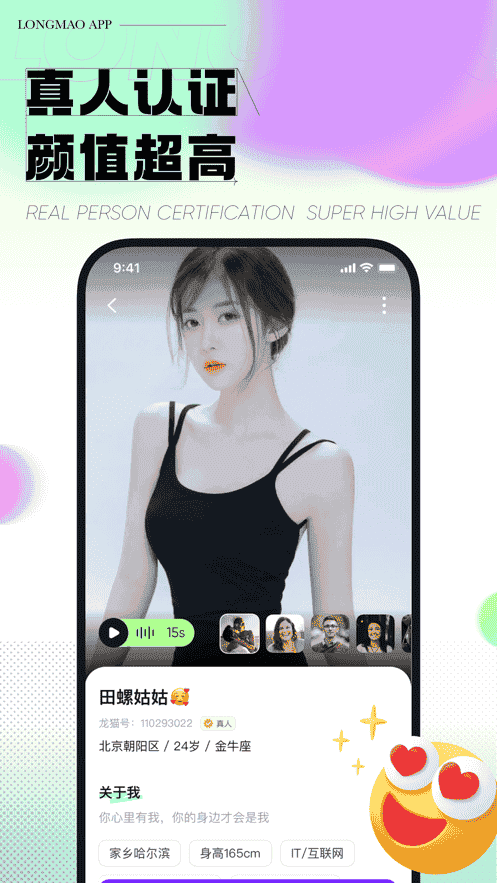 5、全部用戶都由后臺(tái)真人視頻認(rèn)證,通過(guò)認(rèn)證后方可進(jìn)入平臺(tái),杜絕照騙加入。