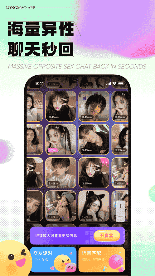 龍貓交友App盲盒交友神器,龍貓交友App是一款集同城交友、戀愛(ài)、約會(huì)、附近陌生人社交于一體的社交平臺(tái),與其一個(gè)人孤獨(dú)的生活,不如來(lái)盲盒抽一個(gè)對(duì)象,告別單身,遇見(jiàn)讓你心動(dòng)。