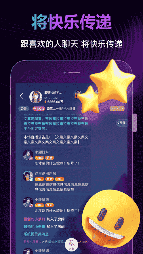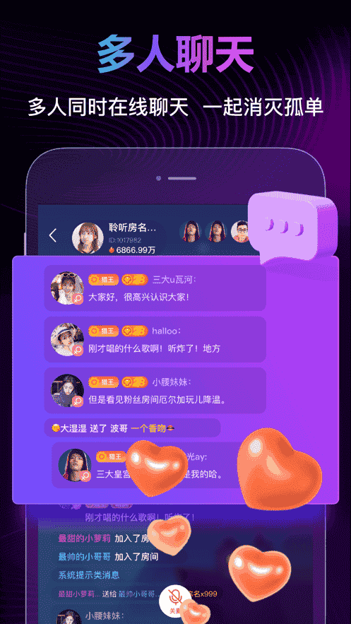 1、海量在線優質用戶,你專屬的線上派對用聲音魅力展示自己,尋找屬于你的聲音。