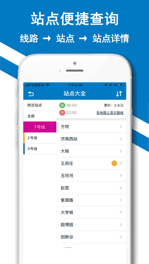 濟南地鐵通App,由上海寶悟網(wǎng)絡(luò)科技有限公司研發(fā),一款濟南地鐵出行導(dǎo)航路線查詢神器,濟南目前已經(jīng)開通1、2、3號線,使用起來非常方便。