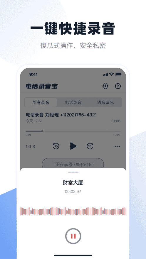 2、一件快捷錄音,傻瓜式的操作,安全私密,拒絕隱私泄露。