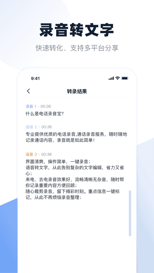 電話錄音寶App是一款實(shí)時(shí)錄音轉(zhuǎn)文字語音備忘錄,可以滿足不同場景的錄音需求,提高工作效率。