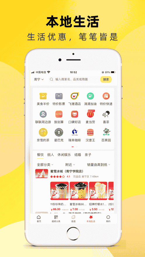 5、本地生活,生活優惠,筆筆皆是,吃喝玩樂購,有不渝就夠了。