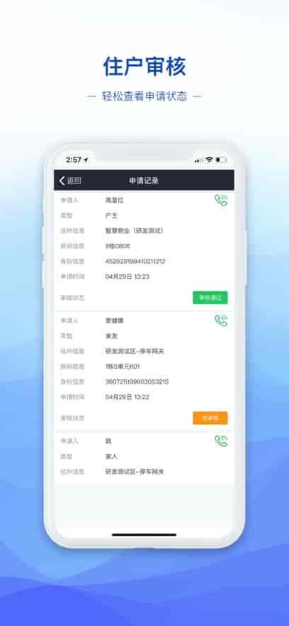 1、手機上傳人臉快捷,人員車輛無感出入小區不麻煩,門禁管理人員信息登記更通暢。