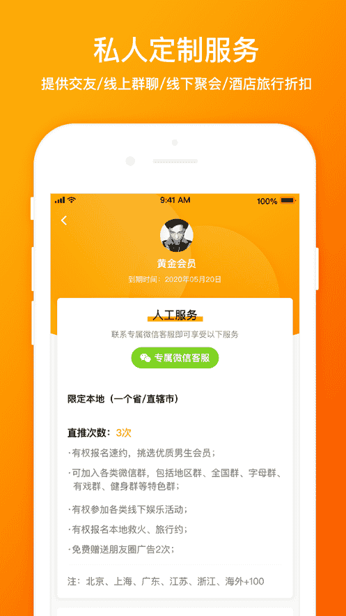 2、平臺為超優(yōu)質(zhì)用戶提供私人定制服務(wù),提供交友、線上群聊、線下聚會、酒店旅行折扣等一條龍服務(wù),為每對情侶帶來一場浪漫的邂逅。
