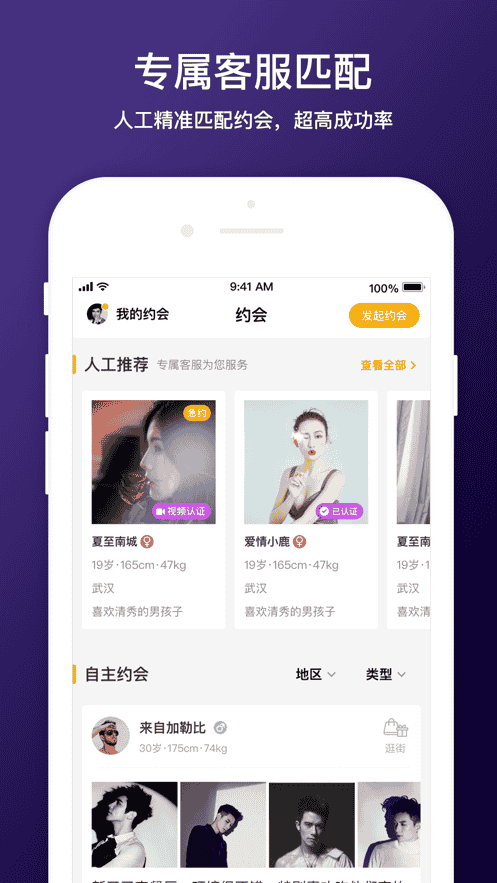 1、每位用戶都可享受專屬客服匹配,平臺人工通過您的喜好標(biāo)簽精準(zhǔn)匹配用戶向往的另一個TA約會,極高的成功率讓眾多用戶在這里找到了真愛。