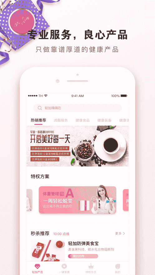 輕加嚴選是一款減肥必備購物App,提供優惠、健康的產品和優質服務,致力于盡可能的提供高性價比、高品質的商品和服務。