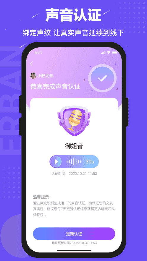 6、聲音認證,綁定聲紋。讓真實聲音延續到線下。
